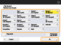 <OK>. Gravar o formato e o tipo de papel utilizado frequentemente para o tabuleiro multifunções