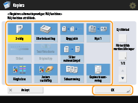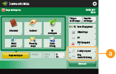 Antalet inställningsalternativ på skärmbilden med grundläggande funktioner för kopiering och platsen de visas på varierar beroende på funktionerna. En genvägsknapp visas inte om <Ej tilldelad> är inställd som en genväg. Begränsning för antalet genvägar för <Alternativ> som du kan registrera är enligt följande. Kopiering: 5 Fax: 4 Scanna och skicka: 2 |