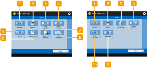 When you press <Access Stored Files> on the <Home> screen, and then press <Mail Box>, <Advanced Space>, <Network>, or <Memory Media> to print files, the following setting screen is displayed.