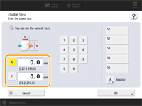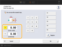 Press <X> or <Y> to enter the length of each side using the numeric keys. ![]() If you register the paper size you use frequently on buttons <S1> to <S5>, you can call them up with a simple press. Registering Free Size Paper (Custom Size Paper) | |