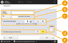 <Time Until File Auto Delete> and <Print When Storing from Printer Driver> can be specified for all boxes at the same time. See <Time Until File Auto Delete> and <Print When Storing from Printer Driver>.