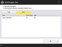 (Monitoraggio stato/Annulla), viene visualizzata la schermata Monitoraggio stato, che consente di verificare il livello del toner o altre indicazioni di stato.
