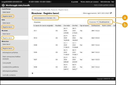 I dati di registro possono essere esportati e salvati come file CSV (*.csv) sul computer.