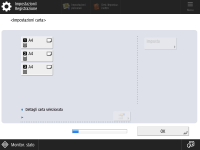 Verificare che la carta caricata nei cassetti sia specificata correttamente. ![]() ![]() Se i formati carta sono corretti, premere <OK>. Per le informazioni sullo schermo e le istruzioni su come cambiare le impostazioni, vedere Indicazione di formato e tipo di carta nel cassetto. Se non è stato eseguito l'accesso come amministratore, procedere al passo 10. | |