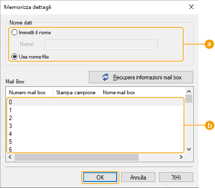 Il nome della casella registrato nella macchina può essere applicato al driver stampante. Per dettagli, vedere la guida del driver stampante.