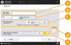 Premere <->/<+> per cambiare il periodo di tempo prima che i file salvati vengano eliminati automaticamente. Se è impostato su "0", i file non saranno eliminati.