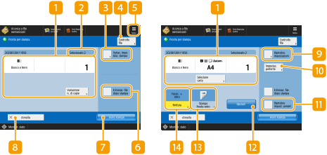 Visualizza lo stato delle impostazioni quali dimensioni della carta da stampare e numero di stampe. Verificare le impostazioni per eseguire una stampa corretta. Per modificare le impostazioni, premere il pulsante sotto la sezione di visualizzazione. Per modificare il numero di stampe, inserire il numero usando la tastiera numerica.