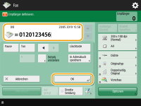 Geben Sie mit den Zahlentasten eine Faxnummer ein, und drücken Sie <OK>.