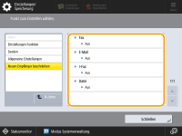 (Einstellungen/Speicherung)  <Einstellungen Funktion>  <Senden>  <Allgemeine Einstellungen>  <Datei SE an Persönlichen Ordner beschränken>  <Ein>  <OK>