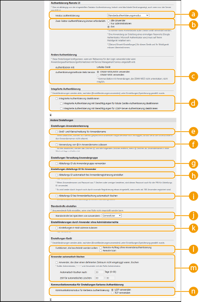 Konfigurieren von detaillierten Einstellungen für Authentifizierungsfunktionen