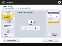 Pulse <Borrar bordes del original> y consulte <Tamaño original>.