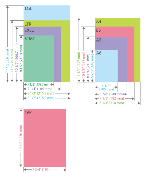 Tamaño de papel: | Equipo de 120 V: LGL, LTR, EXEC, A4, B5, A5R, 16K y tamaño personalizado (5 7/8" x 8 1/4" a 8 1/2" x 14" (148,0 mm x 210,0 mm a 216,0 mm x 355,6 mm)) |