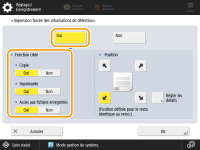 Appuyez sur les touches fléchées pour sélectionner la position d'impression. Pour ajuster précisément la position, appuyez sur <Régler les détails> et spécifiez la position.