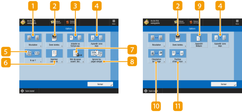 | <Echantillon impression> s'affiche uniquement si vous choisissez de réaliser plusieurs impressions et spécifiez l'un des réglages suivants en même temps. <Tri séq. (Ordre pages)> <Décalage> <Agrafage + Tri séquentiel> |