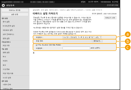 1 | [개별 가져오기/내보내기]에서 [디바이스 설정 (전송 설정, 주소록, 송신 즐겨찾기 설정)]을 클릭합니다. |