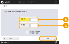 3 | 부서 ID와 PIN을 입력하고 <확인>을 누릅니다. ![]() <부문 ID>부서 ID로 최대 7자리의 숫자를 입력합니다. <PIN 번호>PIN으로 최대 7자리 숫자를 입력하고 <확인입력>을 누릅니다. 확인을 위해 PIN을 다시 입력하고 <확인>을 누릅니다. PIN을 설정하지 않으려면, 이 항목을 빈 칸으로 둡니다. ![]() 예를 들어 "00" 또는 "0000000"과 같이 0으로만 구성된 부서 ID 또는 PIN을 등록할 수 없습니다. 7자리 미만을 입력하더라도 숫자 앞에 0이 추가되어 7자리 숫자가 설정됩니다. <제한 설정/해제와 제한면수 설정>을 눌러 부서가 복사, 스캔, 인쇄할 수 있는 최대 페이지 수를 설정할 수 있습니다. 또한 7자리 입력을 부서 ID 및 PIN에 대한 요구 사항으로 만들 수 있습니다. 자세한 내용은 대리점이나 서비스 담당자에게 문의하십시오. |