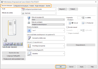 Especifiqueu les opcions d'impressió segons calgui i feu clic a [D'acord].