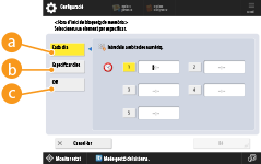 5 | Seleccioneu el número de bústia especifiqueu cada opció i premeu <Bé>.![]() <Desar nom de bústia>Deseu un nom per a la bústia. <PIN>Introduïu el PIN de la bústia. <Inicialitzar>Inicialitza la bústia. <Opcions env. URL>Permet que l'URL d'una bústia amb documents desats s'enviï per correu electrònic o es consulti a la pantalla de Remote UI (IU remota).