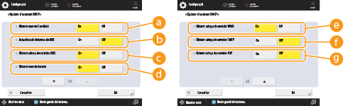 2 | Configureu les opcions necessàries. ![]() <IPv4>Per actualitzar automàticament la informació quan la correspondència entre el nom d'amfitrió i l'adreça IP canvia en un entorn com ara DHCP, premeu <On> a <Actualització dinàmica de DNS>. <IPv6>Per actualitzar automàticament la informació quan la correspondència entre el nom d'amfitrió i l'adreça IP canvia en un entorn com ara DHCP, premeu <On> a <Actualització dinàmica de DNS>. Establiu en <On> l'adreça que vulgueu desar com a servidor DNS a <Desar adreça sense estat>/<Desar adreça manual>/<Desar adreça amb estat>. Tingueu en compte que l'actualització automàtica no es pot portar a terme si totes estan establertes en <Off>. |