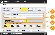 Si utilitzeu Lotus Notes Domino, introduïu el nom d'identificació del node de l'arbre de directoris (dn) com a continuació: "cn=user1,ou=team1,ou=salesdept,o=canon".