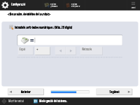 Especifiqueu les opcions necessàries per utilitzar la funció de fax. ![]() Si l'equip no té funció de fax, aneu el pas 10. Seleccioneu el país/la regió si apareix la pantalla de selecció i premeu <Següent>. ![]() ![]() Introduïu el número de fax i premeu <Següent>. Per obtenir informació sobre les opcions de fax, vegeu Opcions de línia de fax. ![]() ![]() Premeu <Establir>, introduïu el nom d'usuari i premeu <Següent>. ![]() ![]() Seleccioneu el tipus de línia i premeu <Bé>. | |