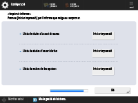 Podeu imprimir la llista d'usuaris de la xarxa, la llista de dades d'usuari de fax i la llista de valors ajustats. ![]() ![]() Premeu <Iniciar impressió> per a l'informe que vulgueu imprimir. Quan la impressió hagi finalitzat, o si no imprimiu una llista, premeu <Bé>. | |