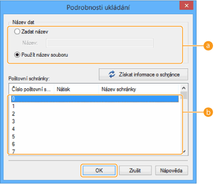 Název schránky uložený ve stroji lze použít pro ovladač tiskárny. Podrobné informace viz v Nápovědě k ovladači tiskárny.