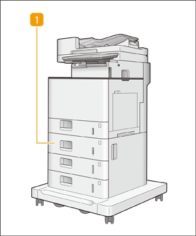 Hiermee kunt u één papierlade toevoegen. Hiermee kunt u papier van een ander formaat plaatsen dan het papier dat is opgegeven voor papierlade 1 en krijgt u bovendien extra opslagruimte.