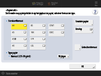 Het scherm voor het opgeven van het papierformaat en -type wordt weergegeven wanneer het papier helemaal is ingevoerd.