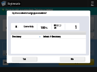 Jeżeli wybierzesz <Włącz> dla obu funkcji <Wyświetl Ekran Potw. Podczas Oddzwaniania> oraz <Rozpocznij Operację Przywrócenia (Operacja się rozpocznie gdy zostanie naciśnięty przycisk)>, kopiowanie rozpocznie się po wybraniu <Tak> na ekranie potwierdzenia.