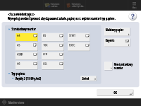 Ekran określania formatu i rodzaju papieru zostanie wyświetlony po zakończeniu wsuwania papieru.