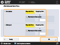 3 | Określ port, dla którego zasady IPSec mają być zastosowane. Naciśnij na <Określ Numer Portu>, aby wykorzystać numery portów podczas określania numerów, dla których IPSec ma zastosowanie. Wybierz <Wszystkie Porty>, aby zastosować IPSec dla wszystkich portów. Aby zastosować IPSec dla danego numeru portu, naciśnij <Pojedyńczy Port> i wprowadź numer portu. Po określeniu portów, naciśnij <OK>. Określ porty tego urządzenia w <Port Lokalny> oraz określ adres porty drugiego urządzenia do komunikacji w <Zdalny port>. ![]() Naciśnij na <Określ Nazwę Usługi>, aby wykorzystać nazwy usług podczas określania numerów, dla których IPSec ma zastosowanie. Wybierz usługę z listy i naciśnij <Usługa Włą./Wył.>, aby ustawić dla niej <Włącz> i naciśnij <OK>. ![]() | ||||||||||||||