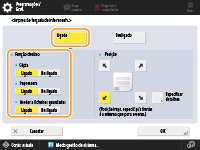 Carregue nos botões de seta para selecionar a posição de impressão. Para ajustar a posição com precisão, carregue em <Especificar detalhes> e especifique o local.