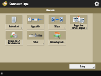 Vissa lägen som beskrivs här refererar till lägen för funktionen <Kopia> eller <Scanna och skicka>.