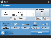 Tryck på som visas på skärmen <Hem> och skärmbilden med grundläggande funktioner för att anpassa den genom att t.ex. flytta på knappar eller skapa genvägsknappar. Anpassa pekskärmen![]() Du kan ändra inställningarna för skärmbildsvisningen, som t.ex. vilken skärmbild som visas när du slår på maskinen och om meddelandet för återstående papper och toner ska visas. <Visa inställningar> Du kan ställa in vilken skärmbild som ska visas när en viss tid har passerat utan åtgärd. <Funktion efter autoåterställning> |