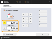 1 | Select the paper drawer in which paper is loaded and press <Custom Size>. |