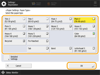 If the paper type loaded is not displayed, press <Detailed Settings> to select from a list.