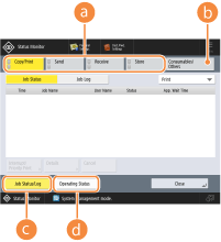 The current status or log of the selected item is displayed. You can cancel copying, printing, and fax transmission on this screen.