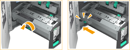 Push the saddle stitcher unit and close the front cover of the finisher.