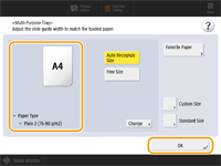 When changing the paper size and typeIf you load a different type of paper into the machine, make sure to change the settings. If you do not change the settings, the machine cannot print properly. Specifying Paper Size and Type in the Paper Deck/Drawer When changing the paper size, change the paper size label as necessary. (Attaching the appropriate paper size label) Note that the paper size label may include paper sizes which are unavailable on the machine. |