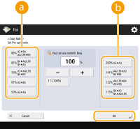 When the screen for selecting the original thickness appears, select the thickness of the original being used. (Appears if <Original Thickness Defaults for Scan from Feeder>is set to <Always Specify>. <Original Thickness Defaults for Scan from Feeder>)