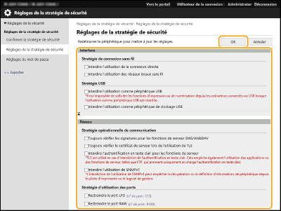 Cliquez sur [Réglages de sécurité]  [Réglages de politique de sécurité].