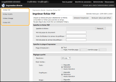 Cliquez sur [Impression directe] dans la page du portail. Ecran de l'interface utilisateur distante