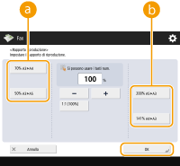 Quando si apre la schermata per selezionare lo spessore degli originali, selezionare lo spessore dell'originale in uso. (Si apre se l'opzione <Impost. predefin. spessore orig. per scans. da aliment.> è impostata su <Specificare sempre>. <Impost. predefin. spessore orig. per scans. da aliment.>)