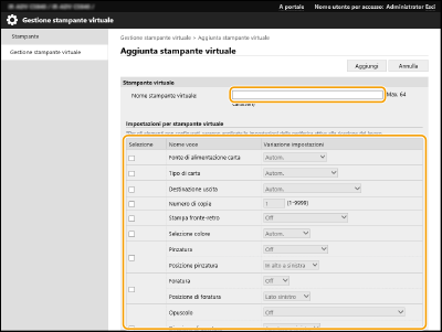 Immettere il nome della stampante virtuale e specificare le impostazioni necessarie.