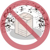 Es besteht die Gefahr, dass die Papierzufuhr und die Bildqualität beeinträchtigt werden, wenn das Gerät an einem Ort verwendet wird, der diese Spezifikationen nicht erfüllt.