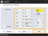 Wenn Papier im anwenderdefinierten Format registriert wird