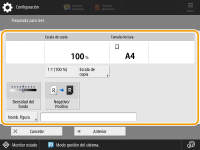 Pulse <Opciones> en la pantalla de Funciones básicas de copia.