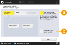 Puede cambiar el papel y el nivel de ajuste que debe utilizarse cuando se realice el ajuste.