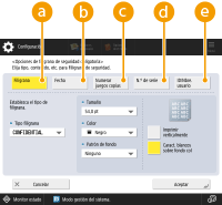Incruste la fecha en que se ha realizado la impresión o la copia. Seleccione el formato de visualización en la lista desplegable <Formato de fecha>.